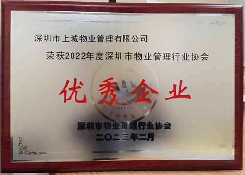 上城物業(yè)榮獲2022年度深圳市物業(yè)管理行業(yè)協(xié)會優(yōu)秀企業(yè)